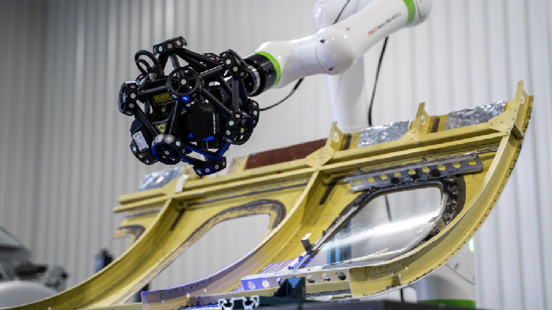 MetraSCAN-R BLACK+|Elite HD: Designed for robotic cells, this automated scanner delivers high-definition, real-time inspection of sheet metal and is ideal for automotive and aerospace production lines.