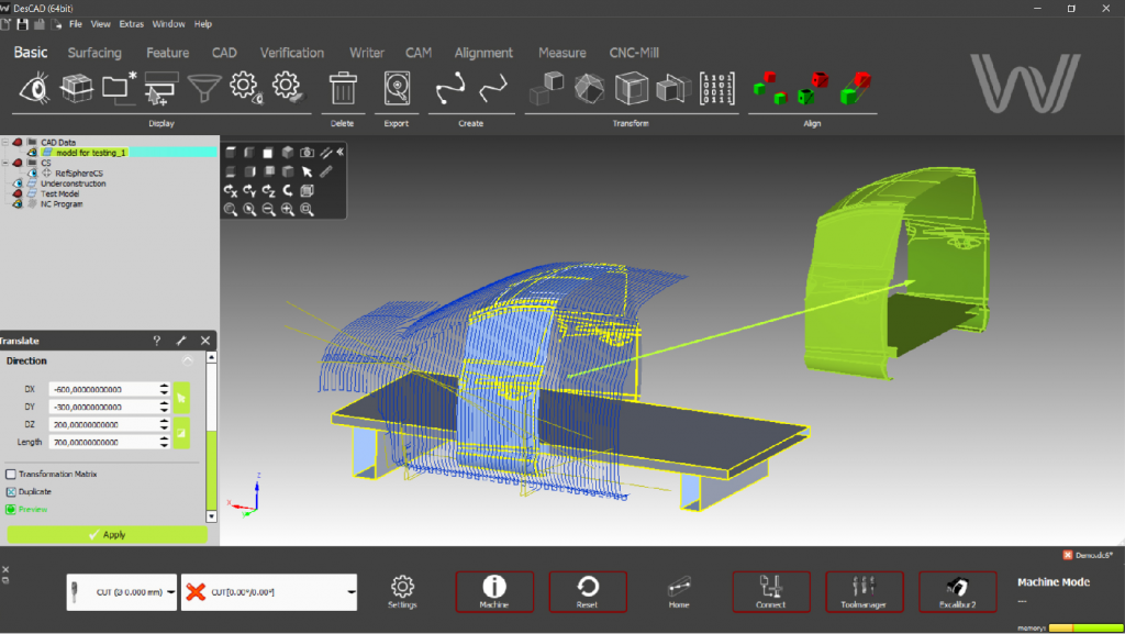 – Execute and modify NC milling files (incl. safety planes and Container Mode for combining multiple programmes)