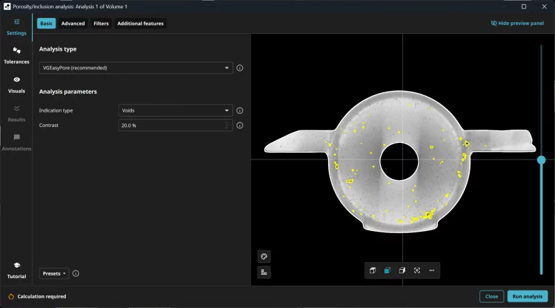 Streamlined Workflow: All porosity/inclusion analysis procedures are now integrated in one solution, eliminating the need to switch between multiple dialogs.