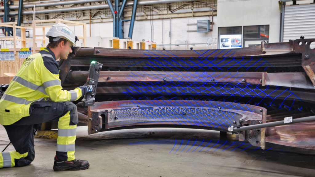 Before relying on portable 3D scanners with high-resolution capabilities over large parts, Siemens Energy depended on manual field surveys using photos and conventional tools to carry out its tasks. However, it was common to encounter incomplete or unreliable information, resulting in delays or reduced efficiency during repair and maintenance.