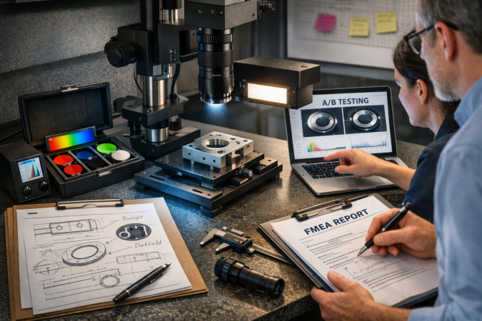 Mock Up and A/B Test: On real parts, capture short image sets for each candidate. Compare edge slope, centroid stability, and false‑reject behavior across the population-lots, shifts, and suppliers.