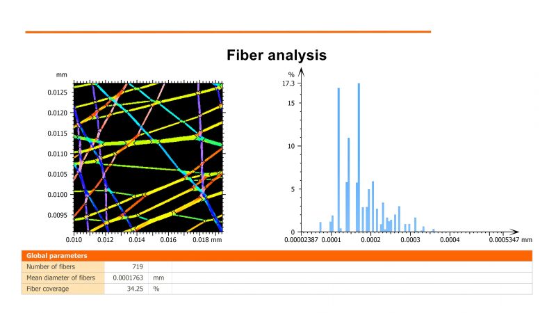 Explore Fibers: Specifically designed for fiber analysis, this module measures diameter, orientation and coverage and can accurately trace overlapping or touching fibers.