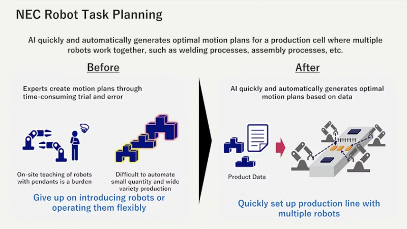 “At Siemens, we are proud to support NEC in advancing global leadership in robotics using the power of digital twin technology and AI,” said Kunihiko Horita, country manager and vice president for Japan, Siemens Digital Industries Software. “By integrating NEC’s cutting-edge Robot Task Planning solution with Siemens’ Process Simulate, we enable manufacturers to dramatically accelerate robot teaching, reduce setup time, and unlock new levels of productivity. This collaboration demonstrates how Siemens’ commitment to digital transformation and intelligent automation is helping our customers and partners like NEC deliver smarter, faster and more resilient manufacturing solutions to customers worldwide.”