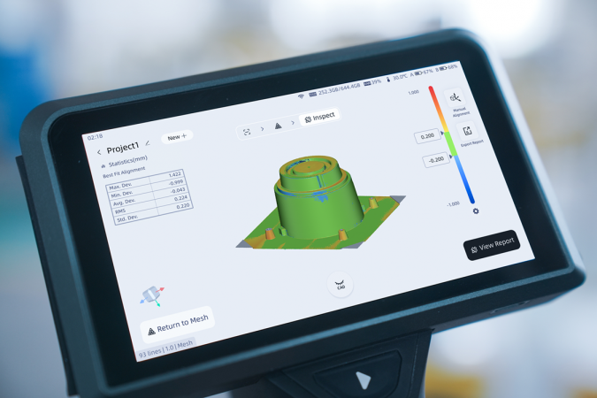 On-Scanner Inspection: The device supports direct scan-to-inspect operation. With predefined templates and an integrated touchscreen interface, operators can capture and evaluate part geometry in real time, helping ensure consistent reporting between production teams.